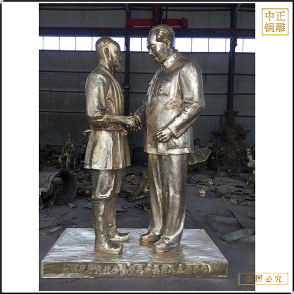 中正銅雕-名人握手銅雕塑 大型名人握手銅雕塑廠家 名人握手銅雕塑擺件制作,我公司集科研、開發(fā)設(shè)計(jì)、普通鑄造、一次性整體澆鑄、精密鑄造于一體。本公司技術(shù)力量雄厚,設(shè)備,不但重視中國(guó)青銅器原有的藝術(shù)風(fēng)格,還繼承了文物原有的藝術(shù)品味,在繼承和發(fā)揚(yáng)古老文化的同時(shí),更深一步為新老客戶定身量制各種銅制、鐵制工藝品等產(chǎn)品。
